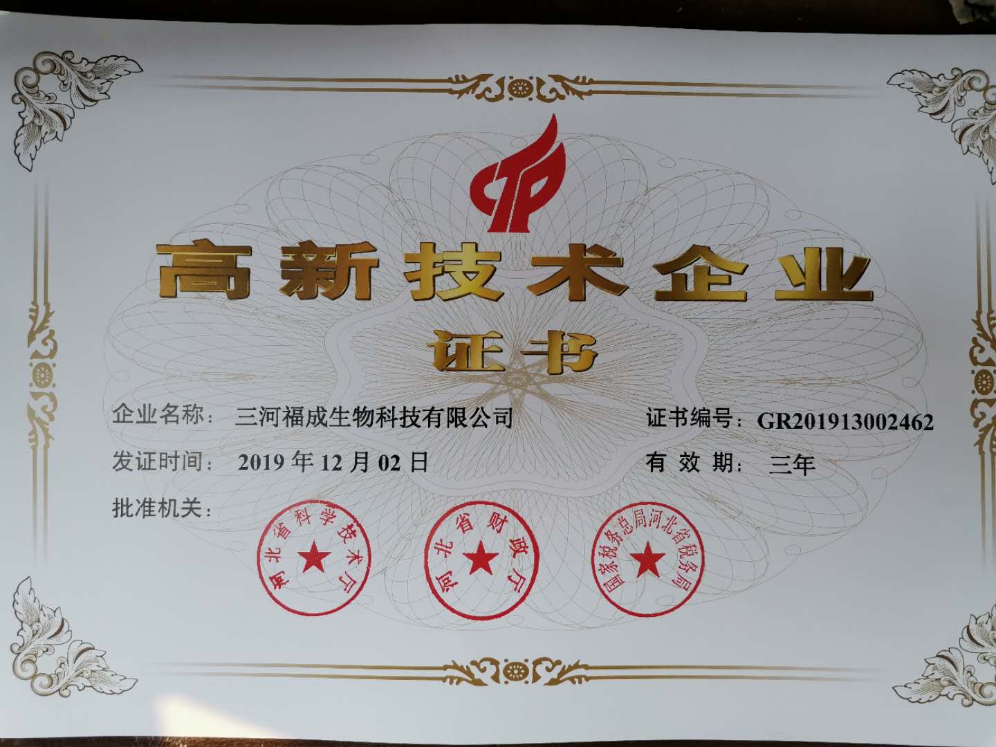 高新技術企業證書